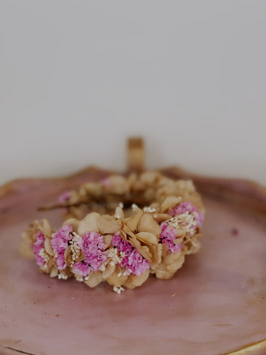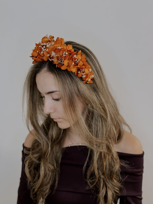 Explora nuestra selección de diademas para invitadas. Hechas artesanalmente con flores preservadas, cada diadema es una pieza única que aporta color, estilo y personalidad. Su diseño cómodo y delicado las convierte en el accesorio ideal para brillar en bodas, eventos y celebraciones, dejando huella con un look diferente.