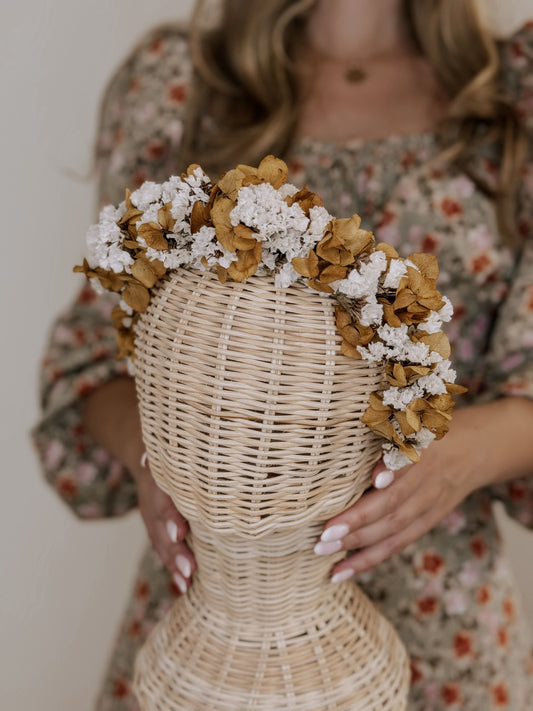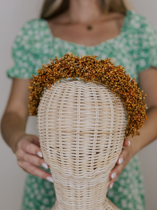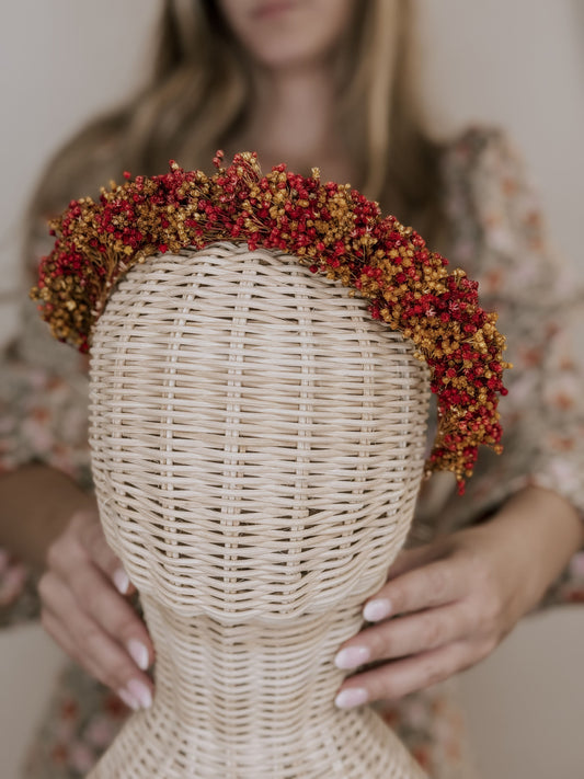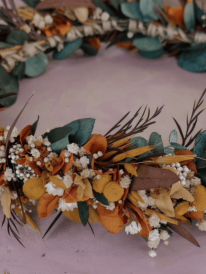 DIADEMAS DE FLORES PRESERVADAS TONOS CÁLIDOS