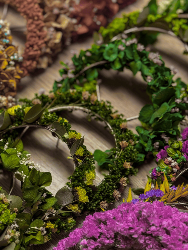 DIADEMAS DE FLORES PRESERVADAS TONOS FRÍOS