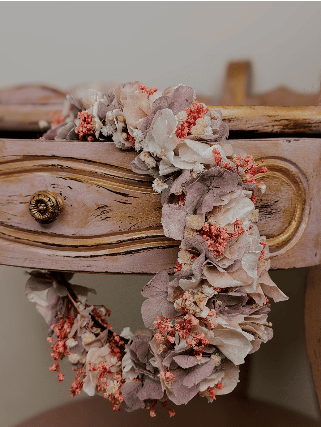 Seleccionamos con mimo las flores preservadas y combinamos los colores para que encajen con tu vestido, tus accesorios y tu estilo.